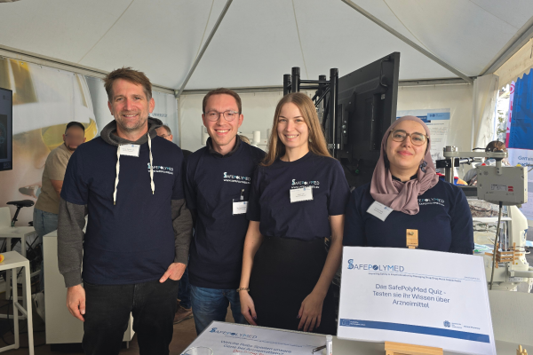 The SafePolyMed project joined the celebrations for German Unity Day (Tag der Deutschen Einheit) from 2–4 October in Saarbrücken, Germany, by presenting an interactive exhibition that engaged visitors through hands-on demonstrations and discussions on medicine safety and personalised pharmacotherapy. The booth attracted many curious visitors and received enthusiastic feedback for its innovative approach to science communication.